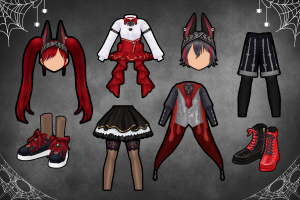Indefinite Spooky Spooky Halloween Red Wolf Set M/F